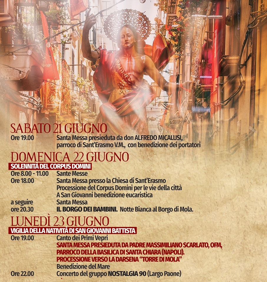 - Presso Largo Paone: Incontro dei Santi Patroni Giovanni ed Erasmo.